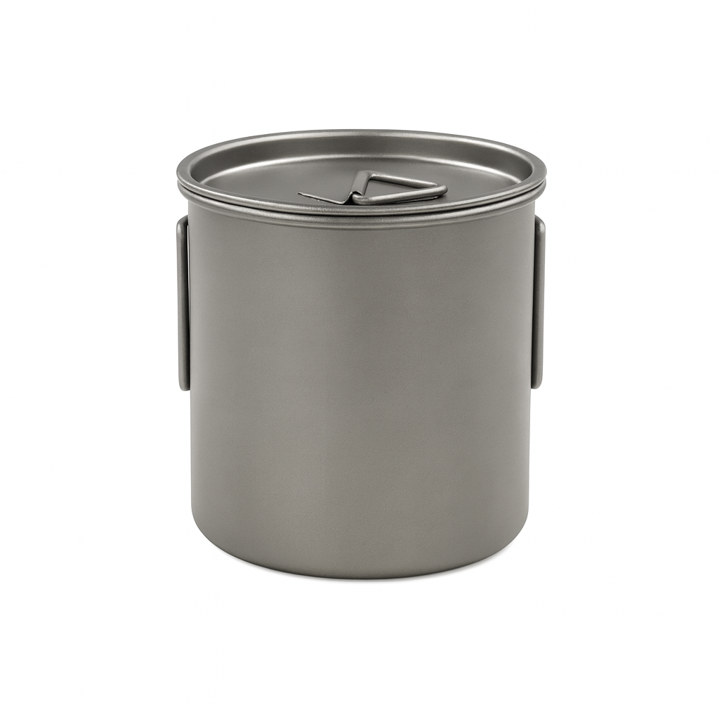 The raw titanium finish feels honest and simple, built to be used hard and carried often. The lid keeps heat in and keeps the wind out, giving you a small moment of calm even when camp is moving fast.